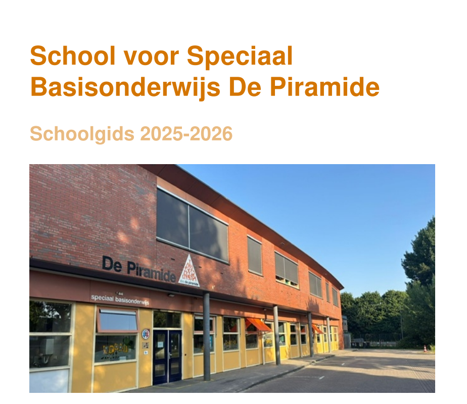 Via onderstaande link opent het schoolplan van school voor speciaal basisonderwijs De Piramide. In het eerste hoofdstuk van dit schoolplan blikken we terug op het vorige schoolplan en staan we stil bij wat er de afgelopen jaren is gerealiseerd. Daarnaast beschrijven we hoe dit huidige schoolplan tot stand is gekomen.
